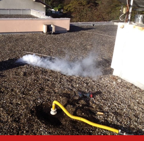 Nous utilisons cette technique pour la détection précise des fuites d’eau. Le principe est simple : un liquide sous forme de fumée est propulsé sous le complexe d’étanchéité. En cas de fuite, la fumée réapparaîtra à l’air libre. Ce test est surtout utilisé pour la détection de fuites sur des terrasses ou toitures terrasses. Le test au fumigène est donc très efficace et permet de détecter rapidement une éventuelle infiltration.